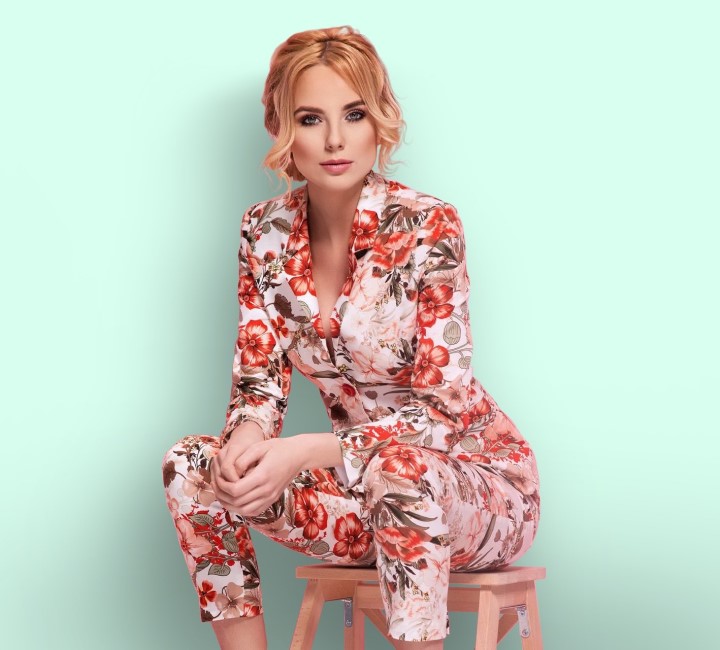 Kadın kısa kollu v yakalı viskon iki iplik bluz ve pantolon ikili takım